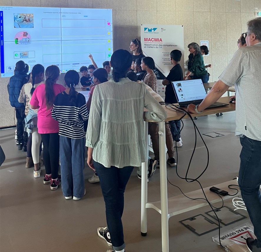 Encadrés par des doctorants, enseignants-chercheurs et partenaires de l’école, les jeunes visiteurs ont expérimenté des activités ludiques autour de la robotique, du machine learning et de la création numérique.